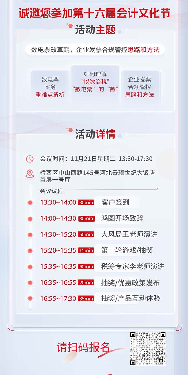 第十六屆會計文化節(jié)——石家莊站將在 11 月 21 日云瑧世紀(jì)大飯店盛大開幕!