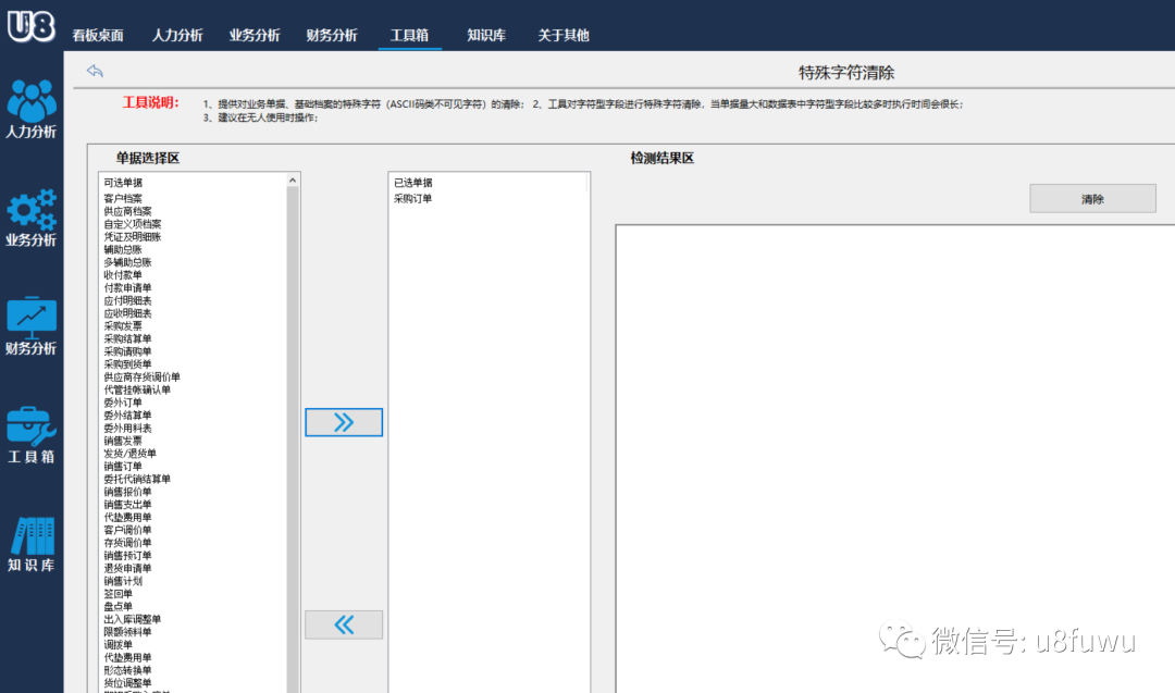 1、提供對(duì)業(yè)務(wù)單據(jù)、基礎(chǔ)檔案的特殊字符(ASCII碼類(lèi)不可見(jiàn)字符)的清除;