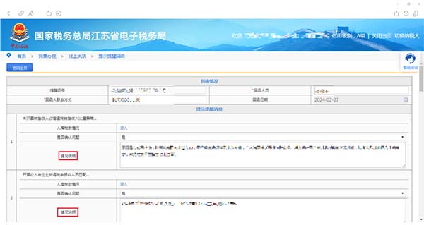 3、在反饋界面,納稅人可以根據(jù)實(shí)際自查情況,進(jìn)行風(fēng)險(xiǎn)自查反饋,填寫(xiě)情況說(shuō)明。