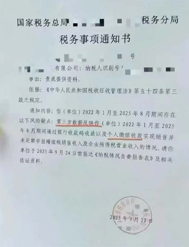 經(jīng)查,該公司于2021年至2023年4月30日通過1325372XXXX、1813755XXXX、1753740XXXX、1355490XXXX等24個私人微信賬號收取公司相關(guān)貨款,稅務(wù)局責(zé)成該公司提供通過以上微信賬戶收款的相關(guān)貨款審計的出庫單據(jù)、銀行收款證明及相關(guān)賬冊資料。