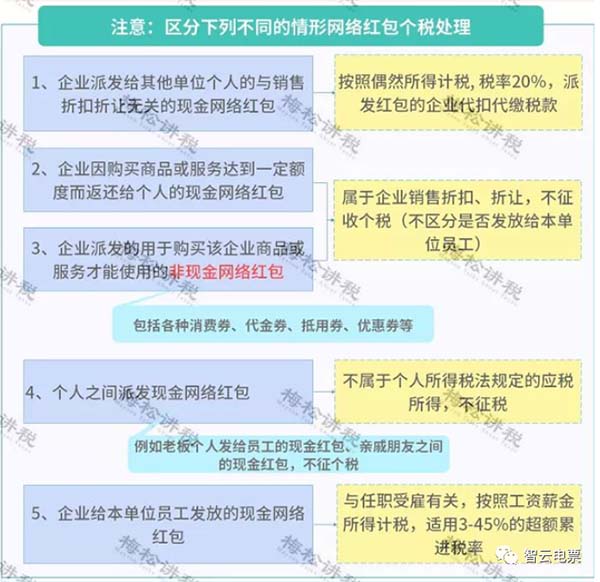 注意:微信、支付寶發(fā)紅包有時也要繳納個稅,區(qū)分下列不同的情形網(wǎng)絡(luò)紅包個稅處理,具體如下: