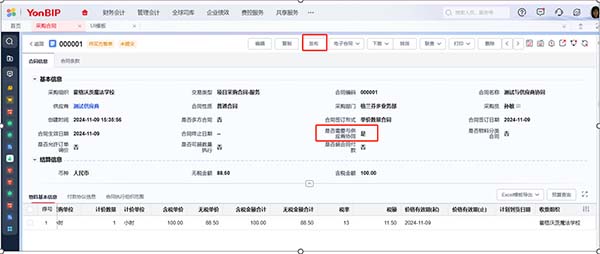 1、采購商【發(fā)布】合同,編輯完成的采購合同有【發(fā)布】按鈕,發(fā)布的意思就是發(fā)布給供應商,會生成供應商端的銷售合同。